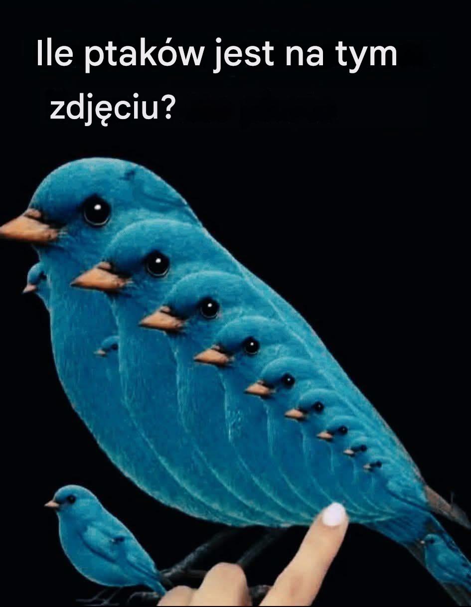 Na pierwszy rzut oka wygląda jak jeden duży ptak 🐦, ale po bliższym przyjrzeniu się można odkryć, że pod jego kształtem kryje się kilka mniejszych ptaków.