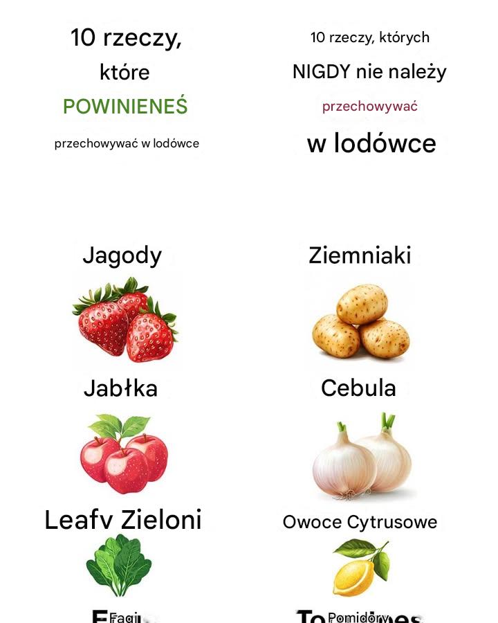 Przechowywanie ziemniaków w lodówce może spowodować, że skrobia zamieni się w cukier, co prowadzi do nieprzyjemnie słodkiego smaku i ziarnistej konsystencji. Przechowuj je w chłodnym, ciemnym miejscu.