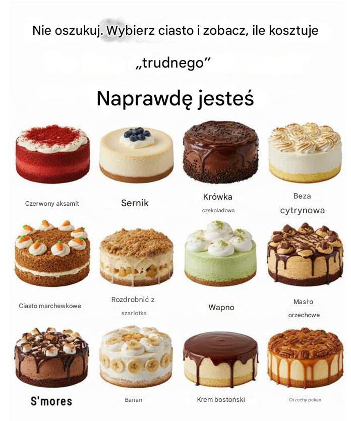 Choć trudno w to uwierzyć, tort, który wybierzesz, może okazać się słodkim zajrzeniem do Twojego wewnętrznego świata – zwłaszcza jeśli weźmiemy pod uwagę, jak bardzo „trudny” (lub pięknie złożony) jesteś.
