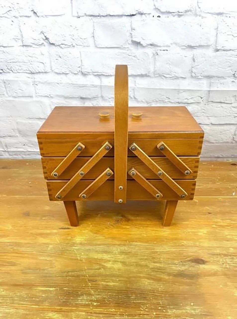 To było stare pudełko na przybory do szycia, niegdyś niezbędny przedmiot w wielu domach. W czasach, gdy ludzie naprawiali, przerabiali i personalizowali ubrania, tego typu pudełko było częścią codziennego życia. W każdej przegródce znajdowały się szpulki nici, igły i starannie posegregowane guziki: prawdziwa skarbnica organizacji i kunsztu.